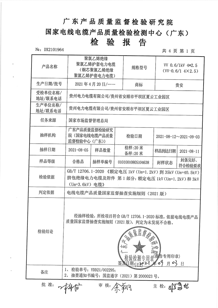 下一篇:鋁芯交聯(lián)聚乙烯絕緣鋼帶鎧裝聚氯乙烯護套電力電纜 檢驗報告